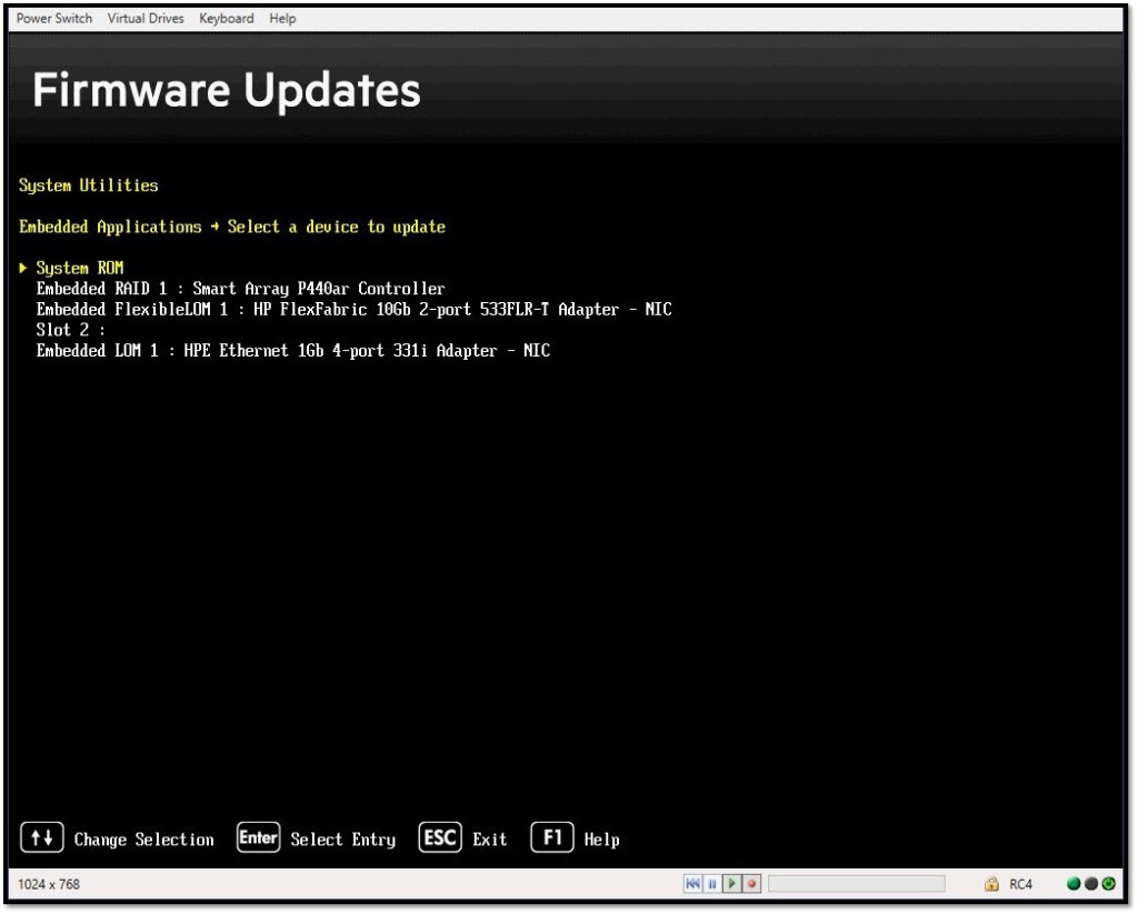 Next open Internet Explorer, log into the ILO and opened the .NET ILO console. Reboot the server to the RBSU and select embedded applications.