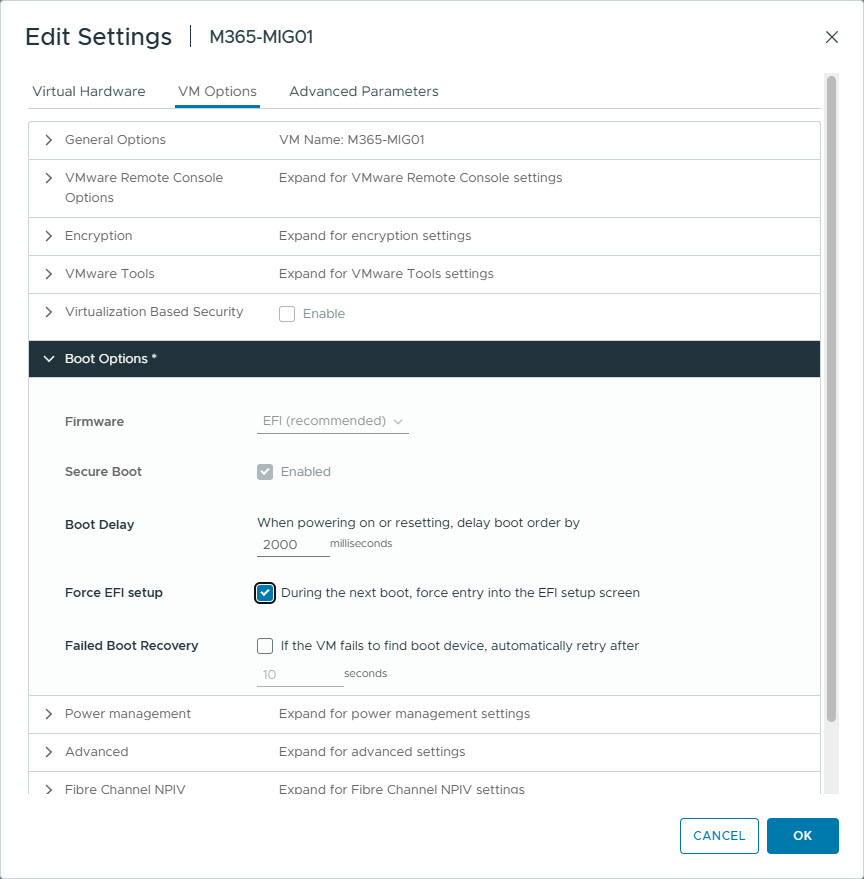 I recently migrated a virtual machine from VMware to HPE VM Essentials (VME) and discovered that the migration process created the new VME VM as UEFI based when it was actually supposed to be BIOS based, and a result, the OS would not boot under VME. Unfortunately, at the time of this writing, VME Manager (8.0.9) does not provide any means to accomplish this via the WebUI in Manager. This meant I needed to edit the VM definition and change it. While it is possible to accomplish, this is very unsupported by the VME team as you need to manually edit the .xml definition file (which they do not support). That said, I’m guessing if you are hear reading this, you don’t care and just want your VM to boot… So lets get to it!